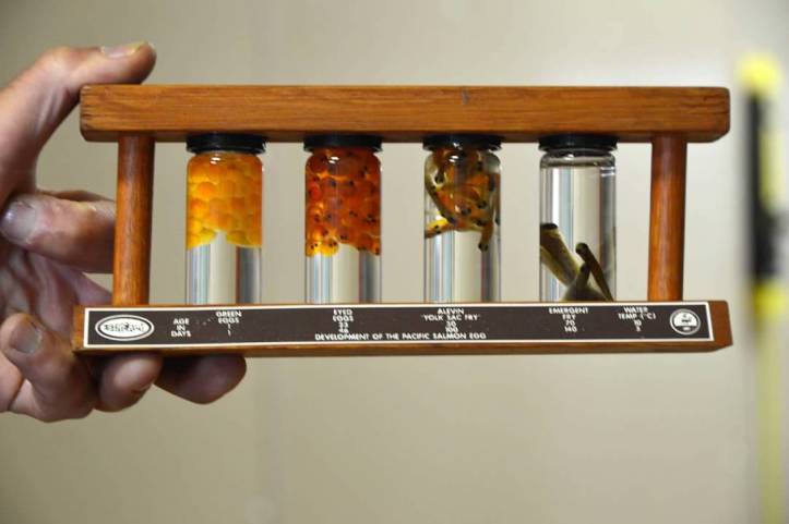 One of the hidden gems we stopped at was a fishery just outside of Homer. It was an impulse stop to give the girls some rest time out of the RV and it turned out to be totally incredible. As there was no one else there we received a personalized tour. They showed us each of the growth stages of salmon, and walked us through their life cycle. Generally, 1 per 2500 eggs will return as adult salmon spawners. They showed us the development from roe, small fries. Small fries will spend a season or two in the river before going out to the ocean. They then stay in the ocean for most of their life, then return and spawn to the same river in which they were born.