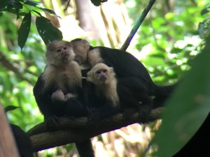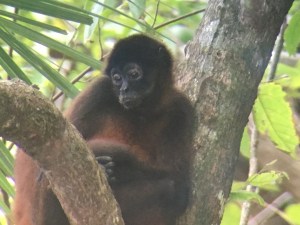 Cutting off the road we meandered through some small communities and watched troops of spider, capuchin, howler and squirrel monkeys move from tree to tree. A spider monkey threw a mango at us that Rodrigo promptly cut for us to eat. A capuchin nearly peed on us. Rodrigo said that the capuchin’s were the gangsters of forest and we should watch our food while we eat. In seeing a family with a nursing baby, it was hard to believe.