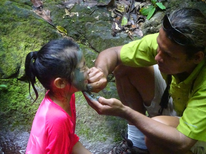 We walked on and explored Rio Carbenaro until we got to a waterfall. In this hidden gem we spent time jumping off the cliff into the pool. Rodrigo let the girls play for a while after their 7 hour hike. He even told us that all the young people would come to this waterfall when they were growing up and the girls would use the clay to make beauty masks. He helped Alyssa and Kylie with theirs. Rodrigo was amazing. He was one of the top guides I’ve ever had anywhere!