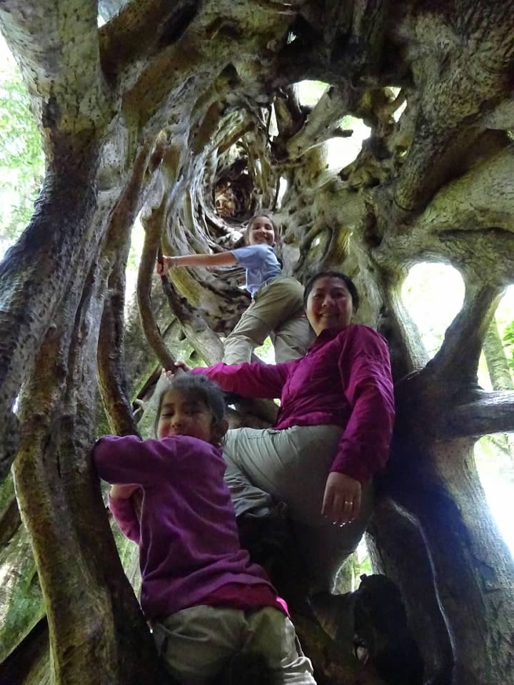 This was once a 70 foot tree that a strangler fig killed. The tree eventually rotted but the strangler fig had grown lattice roots around it, like a staircase. Now stood a strangler fig tree with a hollow center, perfect for climbing.