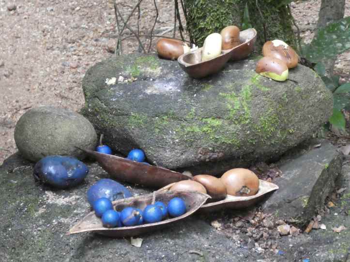Brown seed pods=Black BeanLarge purple far left = Cassowary PlumSmall blue = Quandong |