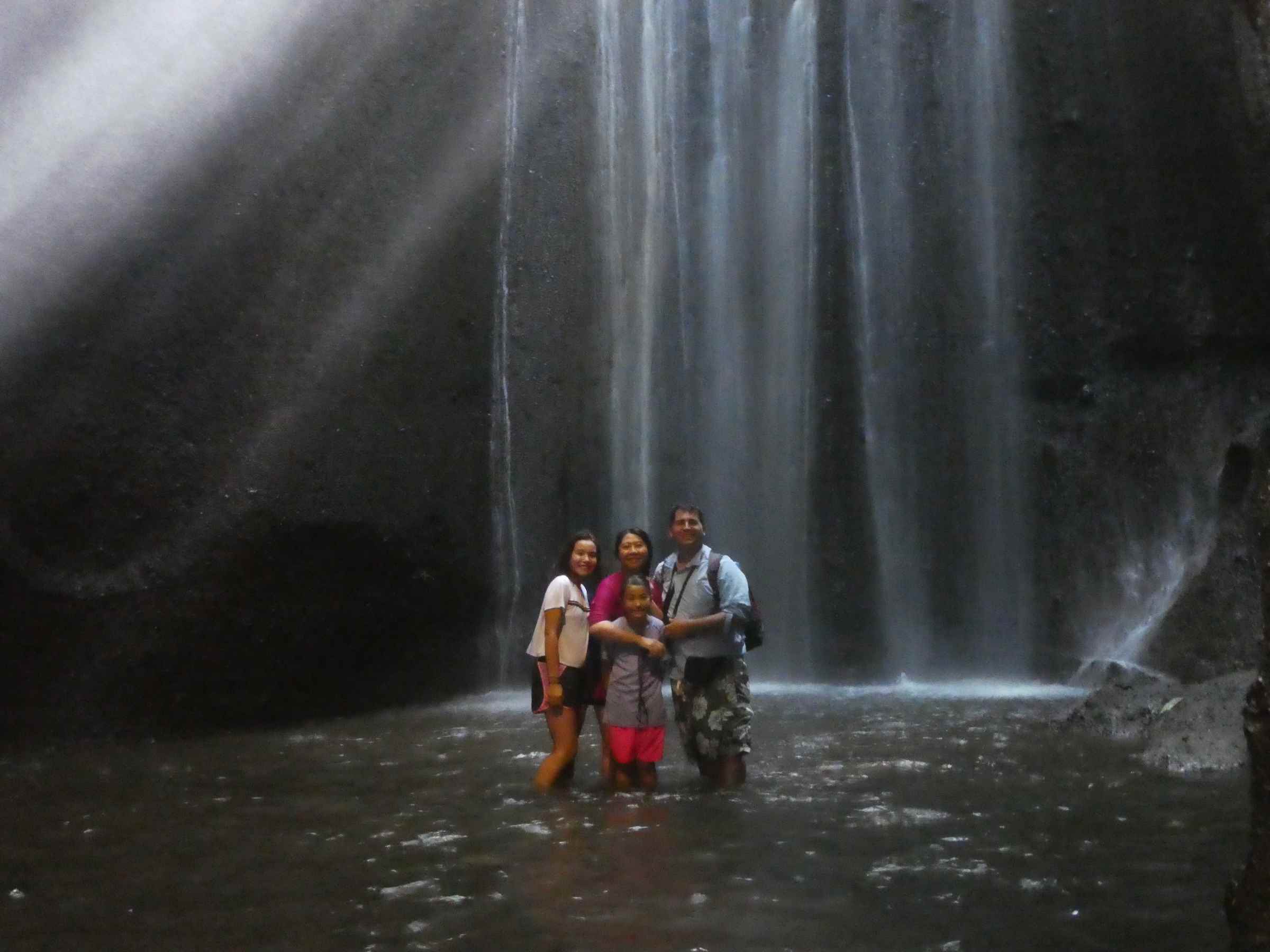 This was farther from Ubud, nearly an hour drive through rural Bali. A small entrance fee is required. Getting down to this waterfall required some serious stair-master work. It was worth it. We walked through a deep canyon to find the falls pouring into a cave. There was a line of people wanting pictures so we waited our turn. The lighting was no good for pictures. But the falls pouring into the canyon, with rays of light certainly made us feel special.