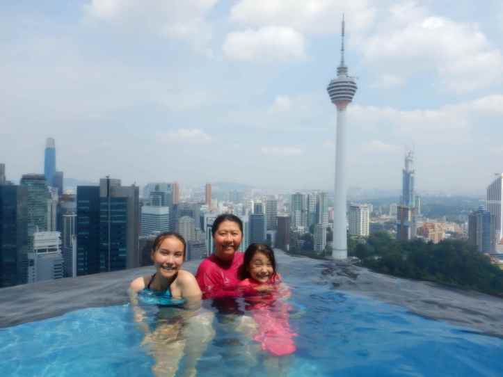 Money attracts opulence. We thought we’d try it out. We stayed at a swanky downtown 51 story hotel with an infinity pool. We showed up to enjoy ourselves in a pool. I certainly had never been this high in a building before.