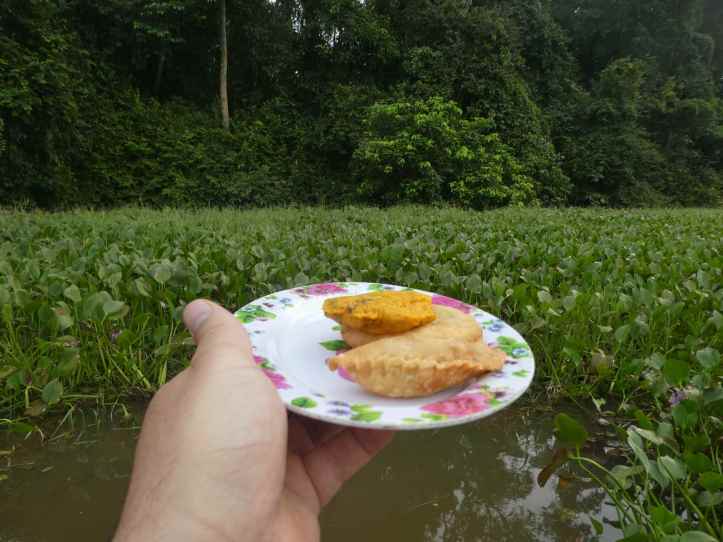 We took three trips a day, leaving at 6AM, again at 3:30PM, and a night tour. Each time Shah provided a special experience for us. On a morning expedition he ran the boat into some water hyacinth for morning tea and breakfast.