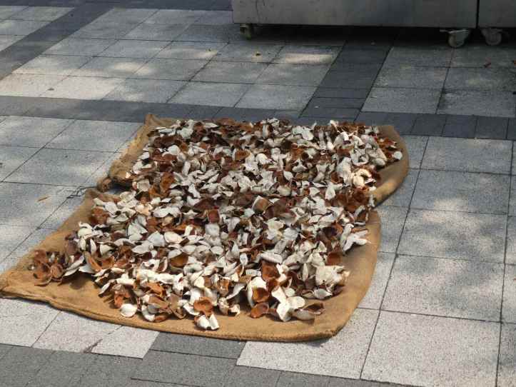 I stepped outside and saw row upon row of shops just like this one, with burlap sacks on the walkway covered with orange peels drying in the sun.