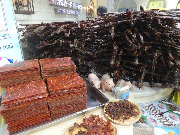 At the street level we found several types of shops: jewelry, foodstuffs, souvenirs, spas, and clubs. Above the street level were residences and guesthouses. Old women flooded the streets offering rainbow hair wraps and woven floral head wreaths. Hawkers carrying baskets with a bamboo pool sold individual grapes, peaches, apples, and something that looked like fruit, but was a candied something that tasted way too sweet. People dressed up in historical outfits, rented by the hour, took pictures of themselves near the wall, city gates, and other points of interest.
