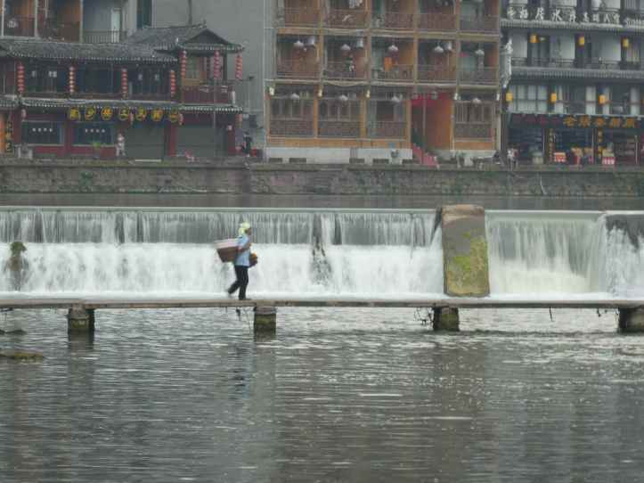 The river winds through tall steep and narrow mountains. It is no wonder that the myth is that when the Phoenix flew over, they found the town so beautiful, they could not leave. In Chinese, Fenghuang means Phoenix. |