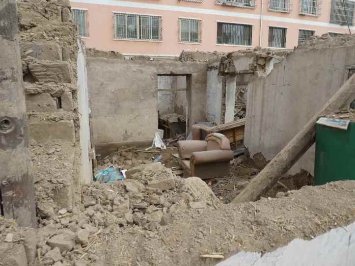 Every city we were in sported acres of bamboos scaffolding with residential complexes going up. Up and Up. In Zhangye, we staying in five story apartment complex next to an old style neighborhood made of earthen brick interwoven with straw and timber.