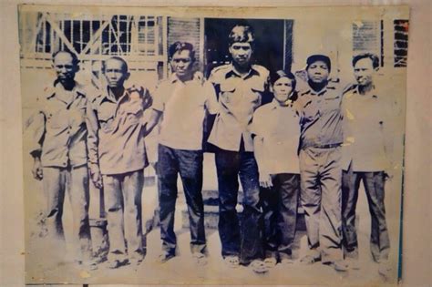 The seven adult survivors of the S21 detention facility are above. Only two survivors are alive today: Chum Mey (far left) and Bou Meng (3rd from the right) Also(Photo-credit: United States Holocaust Museum.