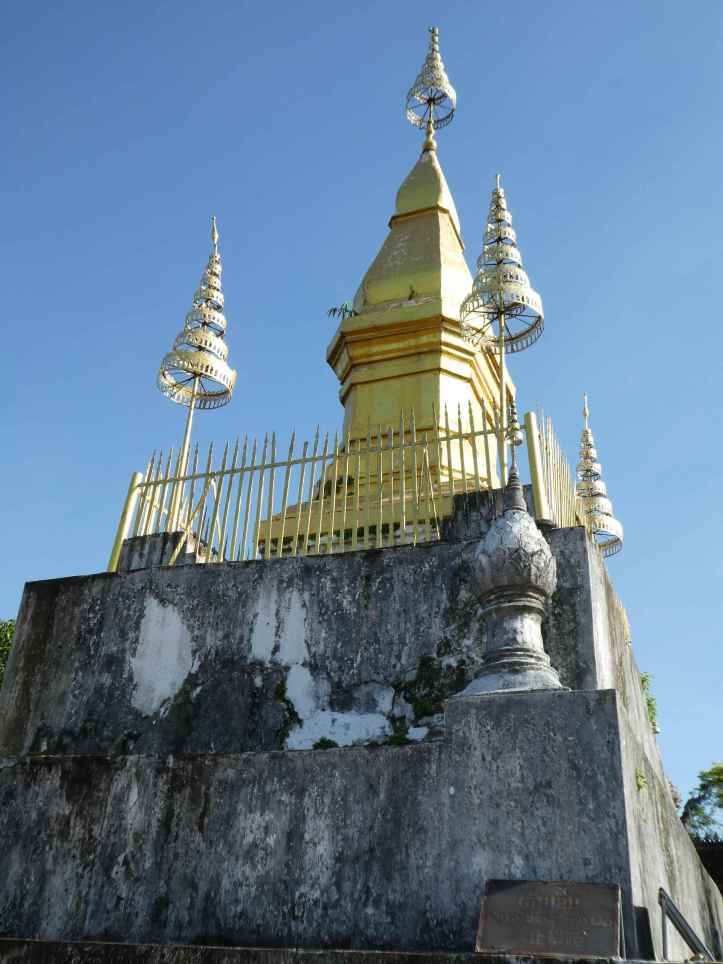 It wasn’t really a mountain, but a tall hill. Located in the center of Luang Prabang, many people climb to the monastery on top. Tourists will buy birds and release them for good luck or drink booze at the top stupa (which is a little disrespectful). I climbed up in the morning on my own and took a look around. The views of the small town were great. And of course by the small stupa, piles of broken beer bottles littered the ground.