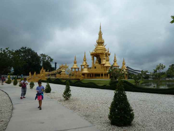 Imagine modern-surreal art meets Buddhist mysticism. Paint everything flat white and you are imagining the white temple. Add in a few more buildings, some gold, three golden toilets, and you are now imagining the White Temple Complex.
