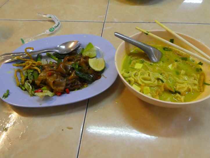 This large collection of food and shop stalls was just north of the Tha Pae Road. It serves tourists, but there were many locals shopping there as well. The basements had food courts serving local cuisine for 30-40B (~$1) per dish. The mid level floors sold produce, meats, and packaged foods. The upper levels sold mostly cloths. Although these divisions were not steadfast. All levels sold everything.
