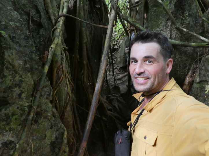 At other times I had to squeeze through limestone formations covered by vines and covered with giant fig trees.