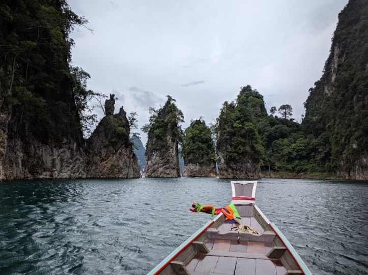 Khao Sok National Park is in the southern part of Thailand. Established in 1980 as Thailand’s 22nd national park, it boasts some of the oldest and most bio-diverse rainforest in Southeast Asia. By one estimate it has 5% of all world species living in it.