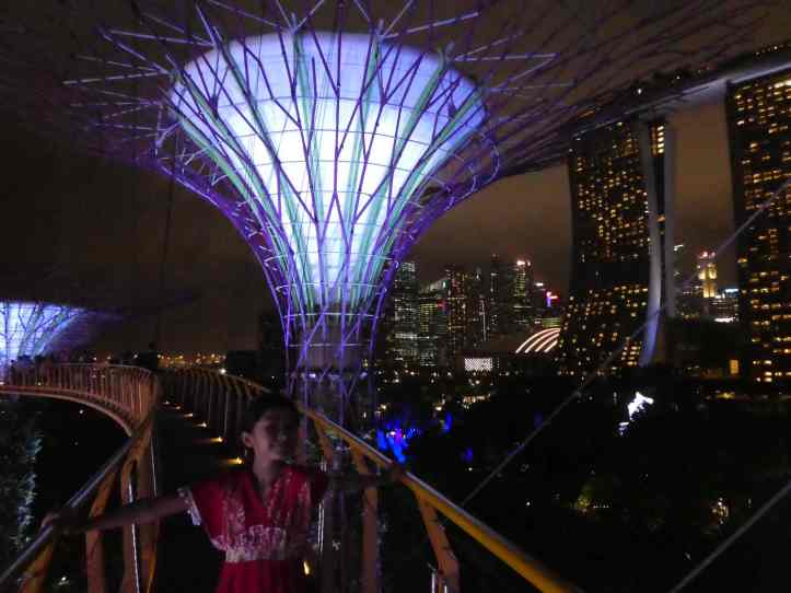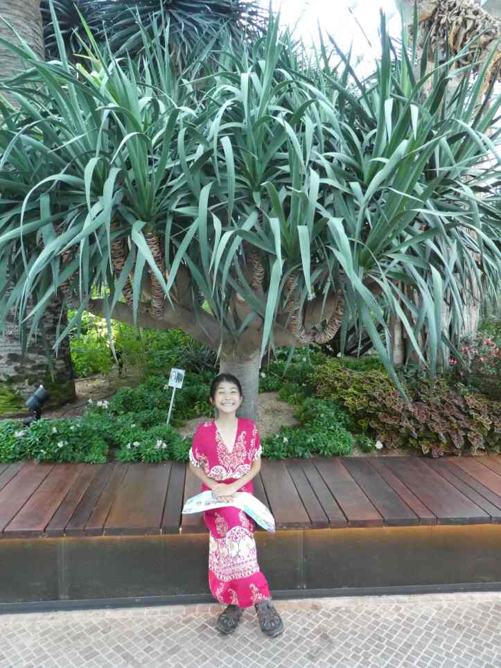 The Flower Dome was a massive dome (larger than two football fields put together (1.2 hectacres). It is listed in the Guinness Book of World Records as the largest columnless greenhouse in the world. It hosts thousands of plants in nine different gardens. Kylie was most excited about seeing the Dragon Tree. She had read that there were only a few thousand left and red all the facts about it on the brochure.