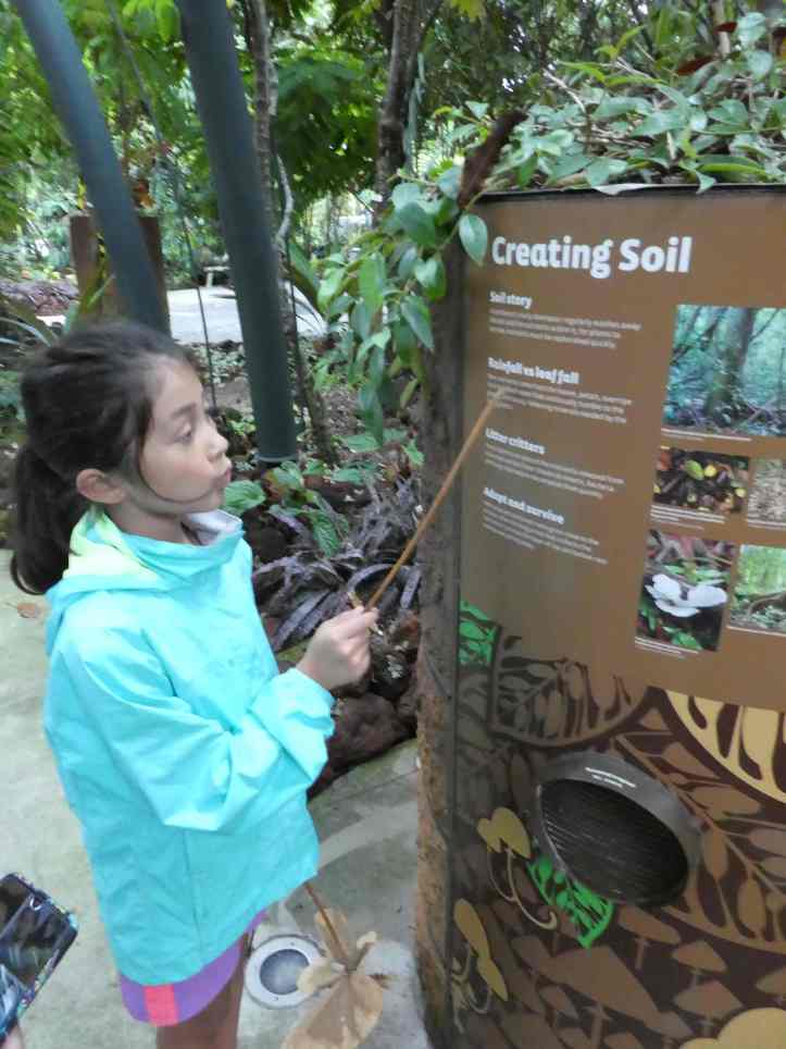 We spent a few hours exploring the surrounding gardens. The gardens were divided into sections with informational activities in each section. Kylie played teacher reading each of the placards and keeping us in line. Later Alyssa took a turn reconciling what she learned in her biology class about bilogic history with a plant history exhibit.