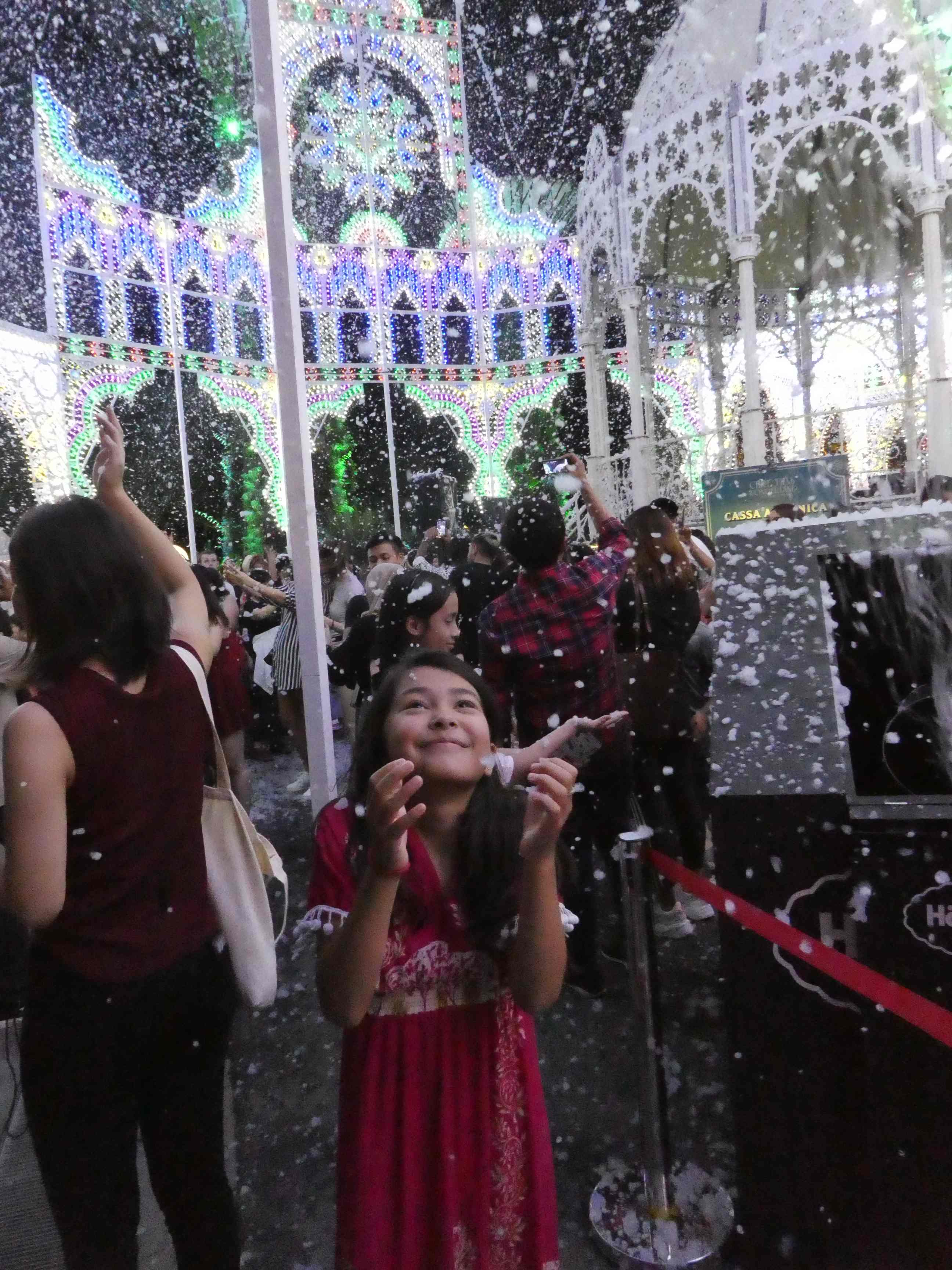 At night the trees sported a light show about the Christmas Festival below. Artificial machines spewed snow to make sure that everyone had a white Christmas (it was actually suds).