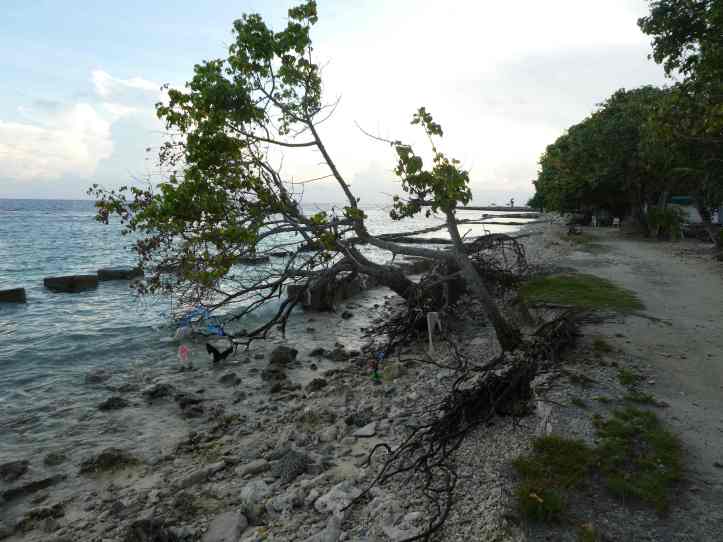 I took a n early morning walk around the island which took about 40 minutes. It is clear this island was doing everything it could to stave the effects of a rising sea. They were planting more trees to help control erosion. They erected cement barriers to minimize erosion from wave action. They were dumping cement and demolished building materials to create more breaks and help keep the sand in place. They were doing everything in their power. Yet the sea continues to rise.