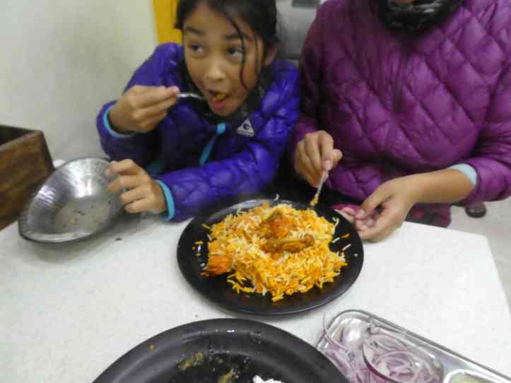 Kylie did not want to wait for the picture. She just dug right into the chicken biryani. (Just keep your hands and feet away from her mouth and you’ll be fine)
