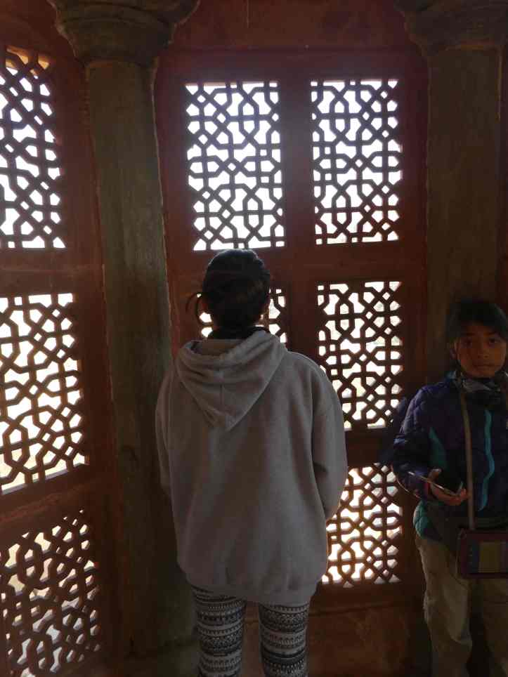 Upon walking up the stone causeway and through the giant wooden doors, into the palace, we were greeted by a fantastic view of the valley and pavilions. As Alyssa looked around, she exclaimed: “I love this place, it’s amazing.” We got an audio guide for Kylie so she could be our tour guide.