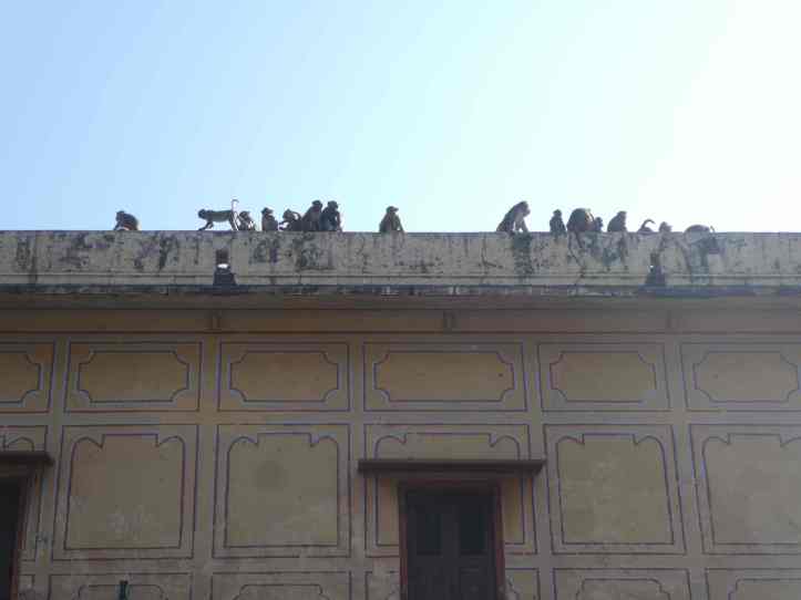 Our first stop in Jaipur was the Amber Fort a UNESCO World Heritage Site. Unlike many of the other forts in Rajasthan, many people still live within the fort walls. I didn’t know what to expect. Our driver slowly meandered as fast as traffic would let him up the city streets to the fort. We passed numerous houses, vendors, and indications of continued daily life. We grabbed some samosas from a vendor and found them more spicy and delicious than the samosas in New Delhi. Langur monkeys dotted the roofs of the houses as we passed.