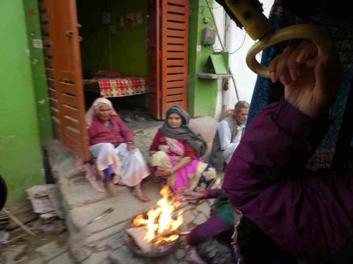 Everyone burns whatever they can to keep warm. Roadside trees by the dozen where hacked down and being burned for fuel during our two day stay in Sawai. On every street in Delhi people huddled around small fires. People burned whatever they could: Heaps of plastic, coal, wood, whatever would sustain flames. A lasting image for me was a homeless woman huddled around a fire in Vrindervan. A giant plastic wheel was in the fire bellowing thick black smoke. Insider her sari she rocked baby who was crying. Aside from keeping warm, vendors used open flames as well as gas for cooking. The air was frequently thick with the smell of burning garbage, plastic, and wood.