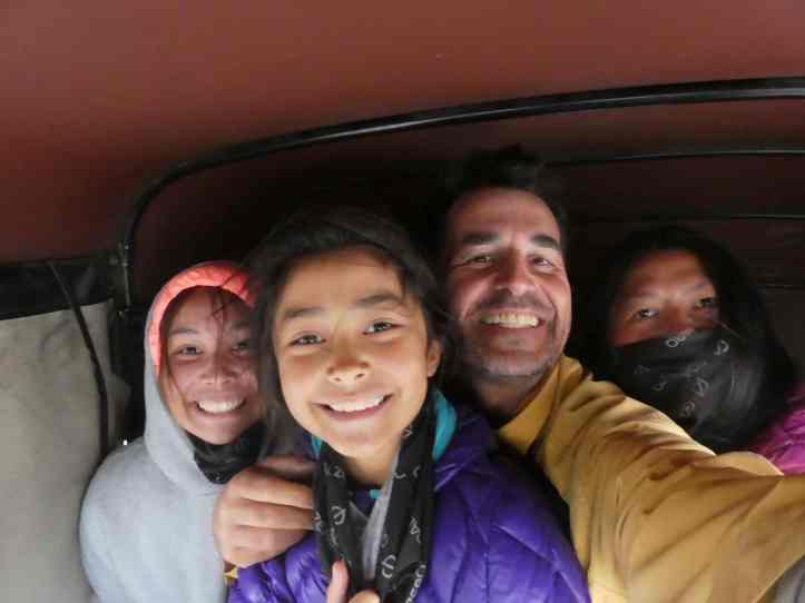 Road safety seemed to be what people were comfortable with, rather than an objective standard of safe conduct. We saw one major accident in all our driving. However we also saw many car carcasses along the road — some were stripped and rusted and some were new. Helmets for motorcyclists seemed optional. Motorcycles were not only the “family truckster“, but were also the family U-haul. Passengers rode atop buses and in the back of trailers.