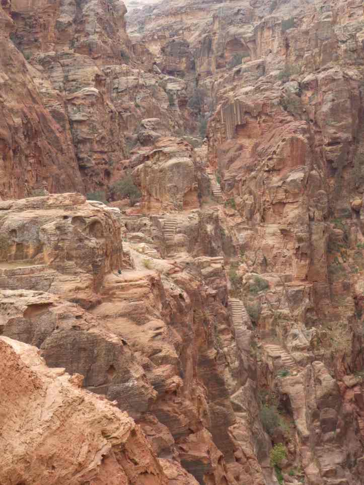 Some of the steps on the way to Al Deir. I didn’t count. Officials state it was 855 steps; however donkey drivers would tell tourists that it would take an hour to walk and there were over 900 steps or a 1000. “Only 20 minutes by donkey” I was surprised by how many tourists couldn’t be bothered with walking and wanted to used the donkeys. The “herder” would frequently click or whip the donkeys to keep them moving up the steps.