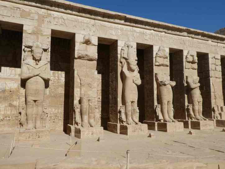 Arguably, Pharoah Hatshepsut was one of the most powerful women rulers in history. A testament to her power and influence was her Mortuary Temple. (Click Here). Like Abu Simbal, it was oriented and aligned such that the the winter solstice the sun shines into the main shrine illuminating only Amun Ra and Osiris proving that they were more important gods than the others. Also, in front of the temple they excavated tree stumps in front of the temple that were depicted as important gifts in hieroglyphs.