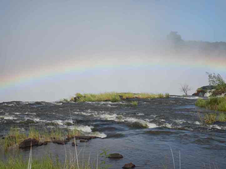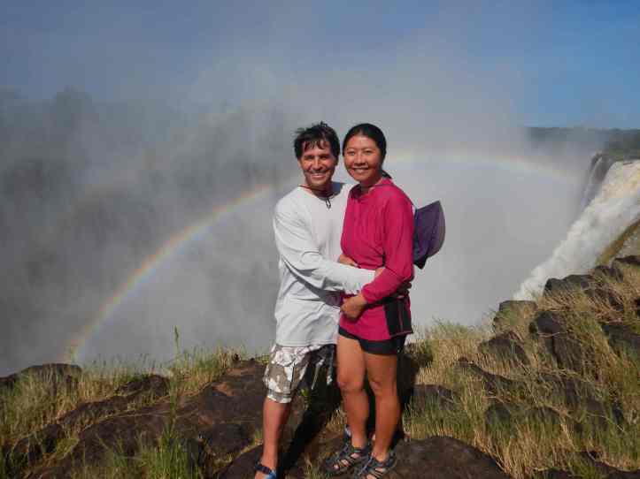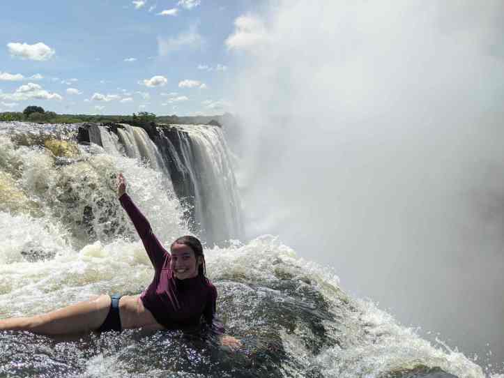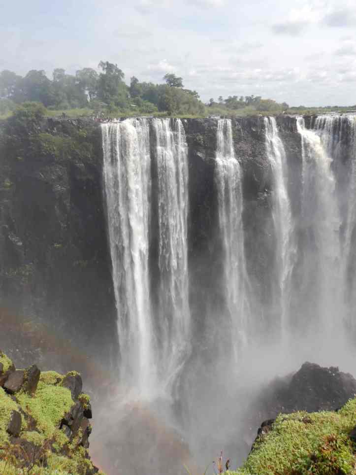 The island was small, but we stored our things in a lock box and headed out for the view. The water levels were too high to visit the Devil’s Pool. However we were allowed to visit the Angels Pool during the rainy season. I almost wish they were too high to visit either. Being at the edge of a 108 meter drop was terrifying enough; however being at the edge wading through swiftly moving water with slimy and slippery rocks underneath was nerve racking. We were one slip away from being pushed over the threshold to oblivion. Making matters even more terrifying was posing for the pictures. Everyone posed, half grimacing in terror, as people snapped shots.
