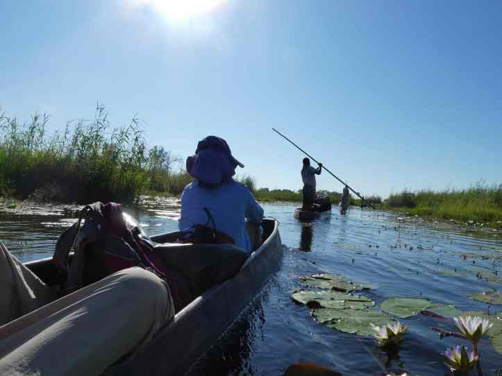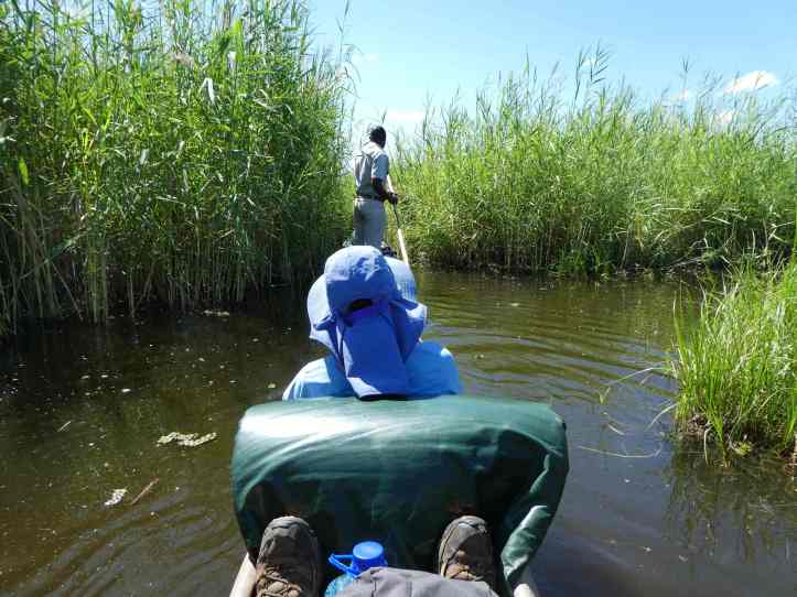 Our jeep arrived at Mokoro station. This was one of the places where tourists congregate for their delta experience. Here tourists can charter boats for the day or for an overnight journey. The Okavango Polers Trust manages the affair. They maintain a registry to make sure that local community members go in order to poll tourists into the delta. For this small community, tourist money brings in substantial income and they’ve organized it to be as equitable as possible. Our head poler Jonah gave us the instruction:
