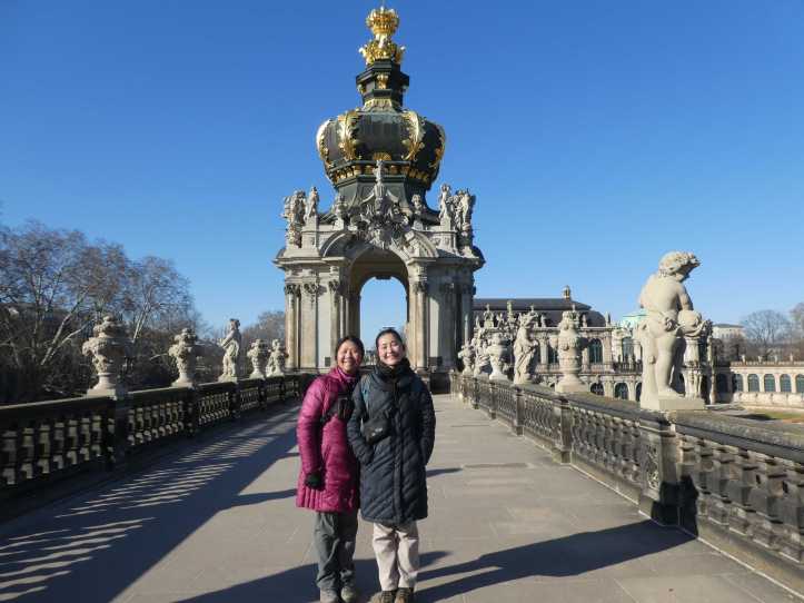 We arrived at our stop and got out. We were greeted by a bunch of cold wind and silence. For being a popular tourist site we saw almost no one around. We arrived almost 2 hours earlier than our walking tour was scheduled for so we decided to walk around and explore a little. We sat in a little cafe and discussed our plans for the day. We finished our drinks and set out. We stopped by a statue we saw when we first got off. Of course we spent a while in the freezing cold as mom took picture after picture. After poking around for another hour we went to our meeting place and found our guide. We spent 2 hours walking around a small area in Dresden. Our guide showed this huge mural made entirely out of porcelain. We were informed that it was the biggest porcelain mural in all of Europe. Our guide then explained to us how most of Dresden had to be rebuilt after the war and how the mural was left mostly untouched. We then visited Fraudenkirche. Fraudenkirche was the first Luthren church built in Dresden. When the church was first constructed Dresden was largely protestant. To avoid backlash the King had the scandalous statues erected last. The people were so revolted the king had a passageway built from his palace directly into the church. We then went to Dresden Palace. Dresden Palace is one of the most amazing places I have seen. The carved details on every surface captured my attention instantly. Unfortunately when we were there the center square was under construction. There were gold accents everywhere that preened in the sun. We stood at the top of the courtyard looking down and thinking. Inhaling the cold air with the sun at our backs, I felt an immense amount of joy. I then went down some stairs and I found a little area. It was entirely secluded and I was surrounded with intricate statues of women. Behind me was a fountain with no water in it. I was fascinated. All these women had to symbolize something. I thought to myself. Who were they? What lives did they lead? Who was the muse? I wanted to stay and stare at them some more but we had a train and a bus to catch so only 6 hours after we arrived in Germany we were on our way back to Prague.
