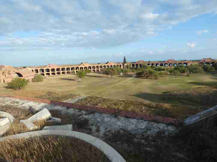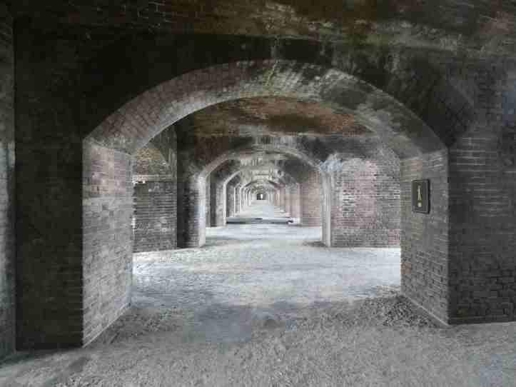 I had to get myself deep in the mindset of the people who built this place to understand why they build this massive fort with 400 cannons on a small island in the middle of the Gulf of Mexico. Trade was important and as the Louisiana purchase was new, quite a bit of trade was going through the gulf to the the new ports at the edge of the Mississippi river. They believed building a fort here, to supply ships, would ensure USA trade interests in the area. At one point 500 people lived on this 14 acre island. Bricks were shipped in (during the civil war, bricks were shipped in all the way from Main), 400 cannons, cannonballs, gunpowder, fresh water, and a great many slaves to dig the moat were all shipped in. I just could not understand it, why not just sail around or avoid the area. But I guess I’m not smart enough to understand the geopolitics of the 1800s. At any rate Fort Jefferson is massive.