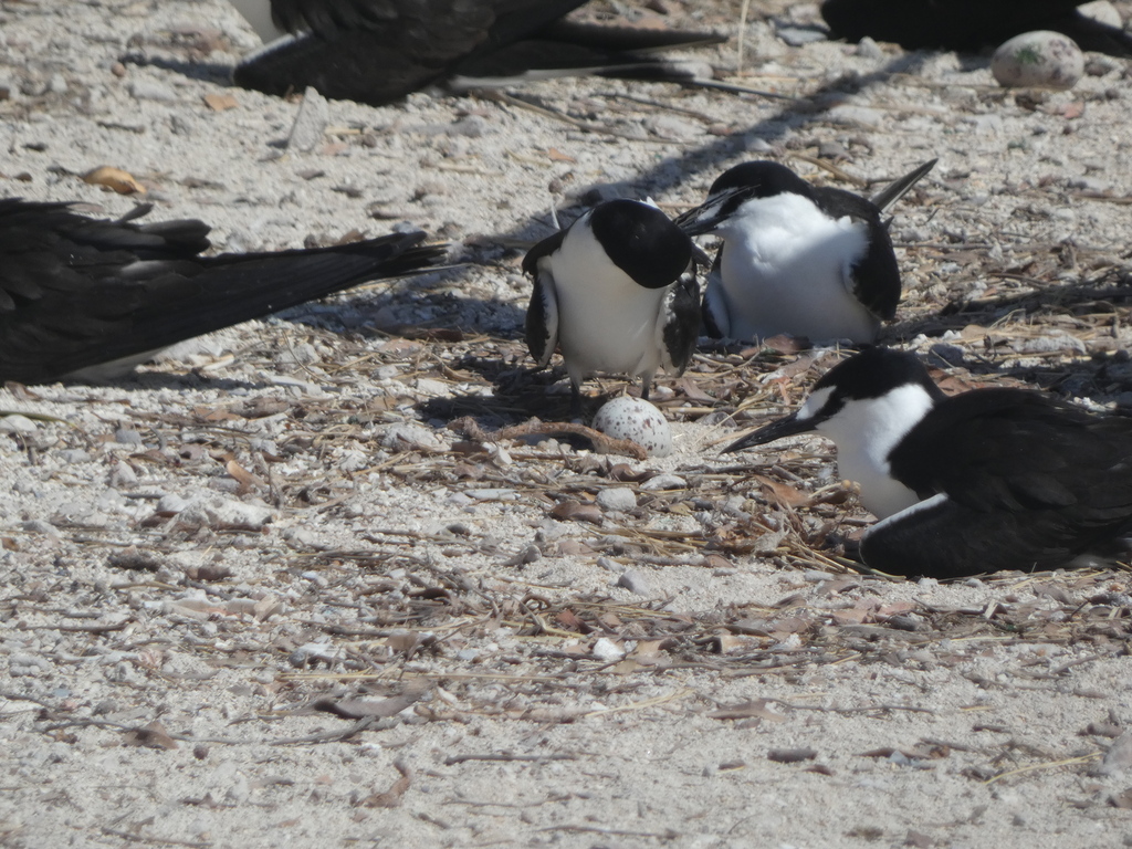 While the Dry Tortugas is mostly the marine sanctuary around the island, there is quite a bit of wildlife. It is the only nesting colony of frigate birds in the United States. In addition, there are thousands of sooty terns and noodies that nest here. So in early spring, the skies are dark with birds, and the air is thick with pelagic birds trying to find mates. While the frigate birds enjoyed a small colony at the end of Bush Key, the sooty terns were nesting right on the ground on edge of Garden key. The biologist said he counted 400 eggs on the morning I was there.